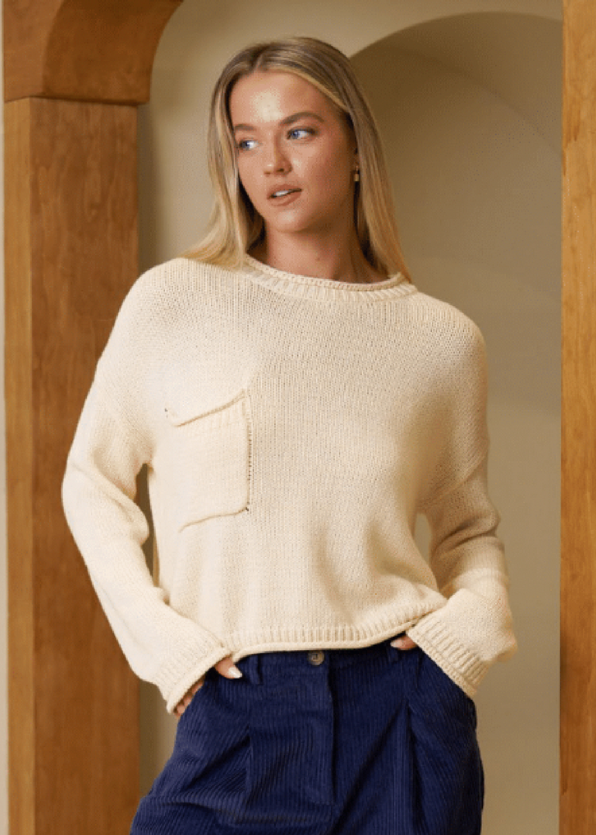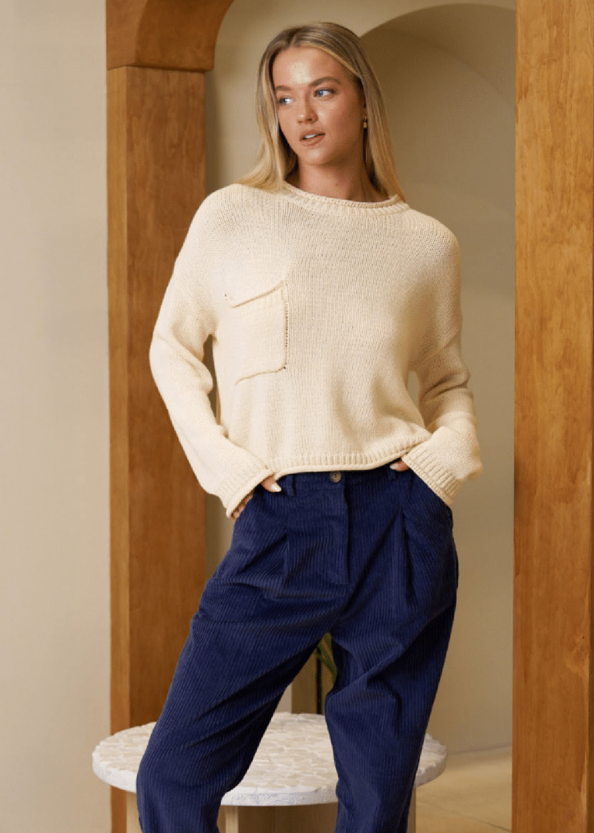 Stay cosy and chic in our MASON KNIT JUMPER - CREAM! This versatile piece pairs perfectly with denim and jeans, making it a must-have addition to your wardrobe. Embrace comfort and style with our knit jumper!