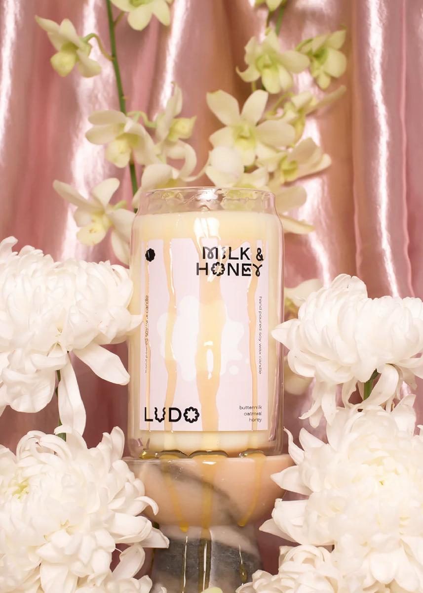 Indulge in the sweet and dreamy scent of our Milk & Honey candle. with notes of inviting buttermilk, oatmeal, and honey, this candle will transport you to a magical world where you can't help but wish you could take a bite. light it up and let the creamy aroma fill your space, creating a sweet and inviting atmosphere.