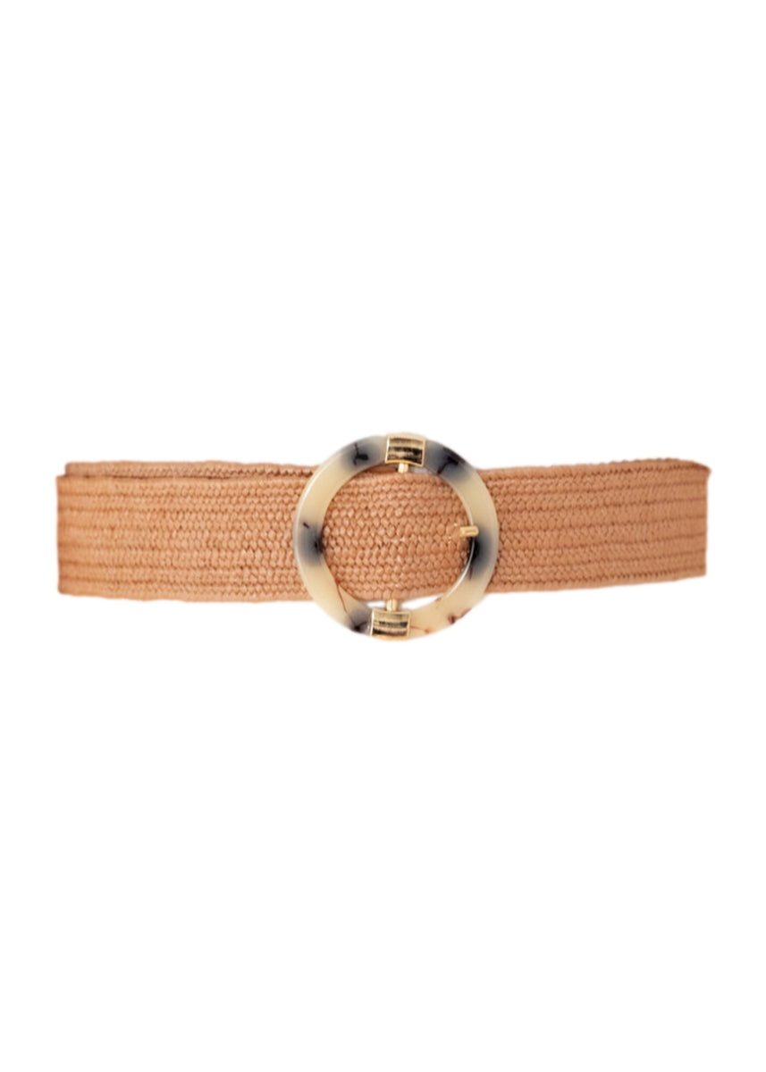 This woven belt featuring an a faux tortoise shell buckle will be the perfect accessory for your Summer wardrobe. Made for the waist and with gold hardware, keep on hand for all those times you need to cinch in your waist.