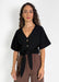 Elevate your everyday wardrobe with the PALU TOP, a versatile black essential featuring a charming front tie detail that adds instant sophistication to any look. The relaxed half sleeves offer effortless style and comfort, making this piece perfect for layering or wearing solo throughout the season.