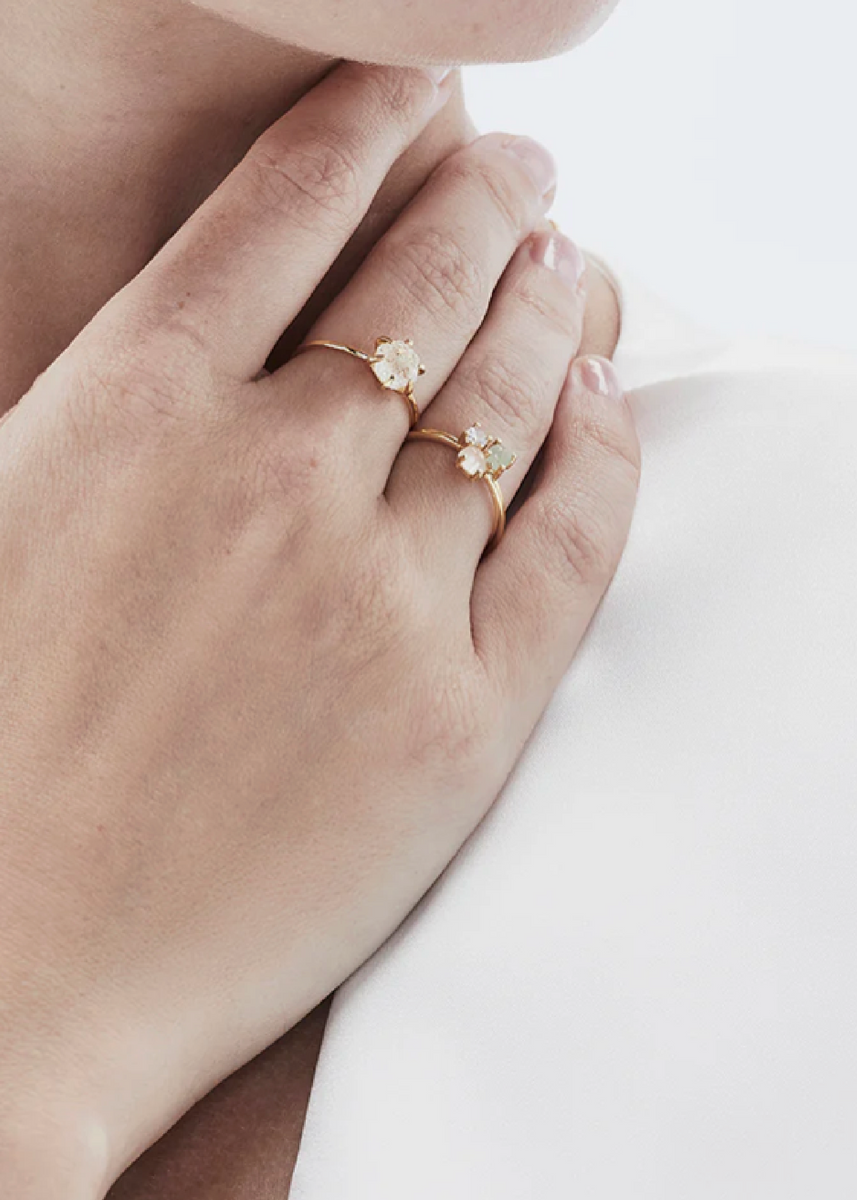 The Poppy Ring is a simple band featuring a cluster of crystal stones . A dainty feminine ring perfect for stacking or wearing on its own.