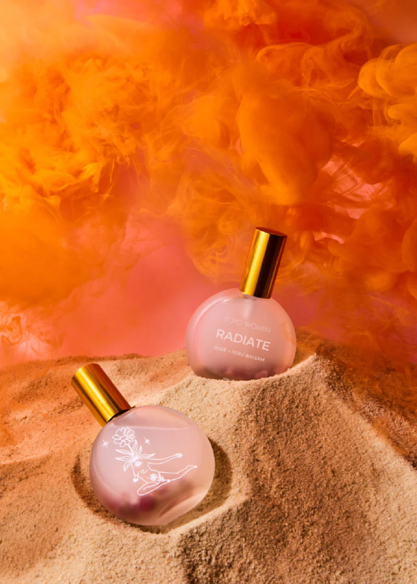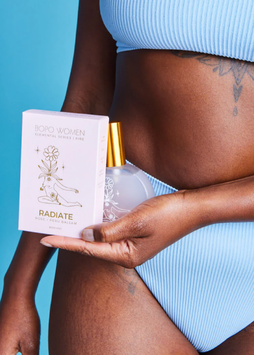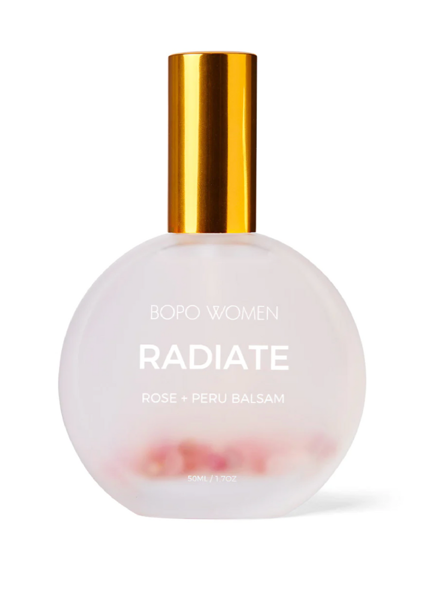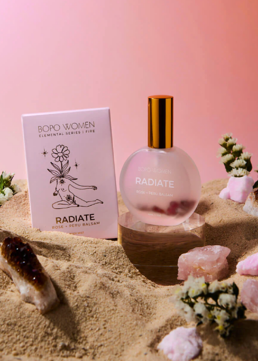 Let sparks fly and indulge in the sweet and spicy scent of Radiate. Starring passionate florals, delicate rose damascena adds sweet pink notes with long-lasting depth, while fruity and flowery ylang-ylang softens the balsamic woodiness of sandalwood. Peppery sharp ginger adds a warm fiery element and smoky Peru balsam a touch of vanilla, wood and cinnamon. Intense and soft, this versatile day or night scent will transport you to candlelit moments in front of an open fire, spontaneous adventures and romantic nights. The Radiate Body Mist embodies the fire sign element (Aries, Leo, Sagittarius) and comes with a beautiful gold foil Fire Woman Tarot Card.