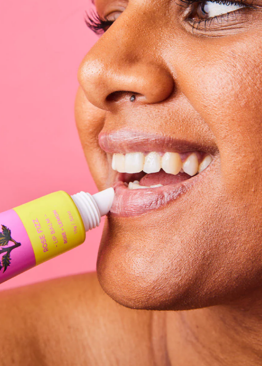 A deeply nourishing lip balm with a burst of pink tinted rose and citrus goodness. When it comes to lip care, hydration and barrier protection are the key. The Rose Fizz Lip Balm is packed with natural ingredients to provide long-lasting nourishment that soothes, softens and conditions while locking in moisture. This wonder balm smells like pink sherbet and has just the right amount of pigment for an easily wearable subtle tint that suits all complexions. Housed in a luxe aluminium coated tube, you'll never want to leave home again without your Rose Fizz Lip Balm - your lips are in for a treat!