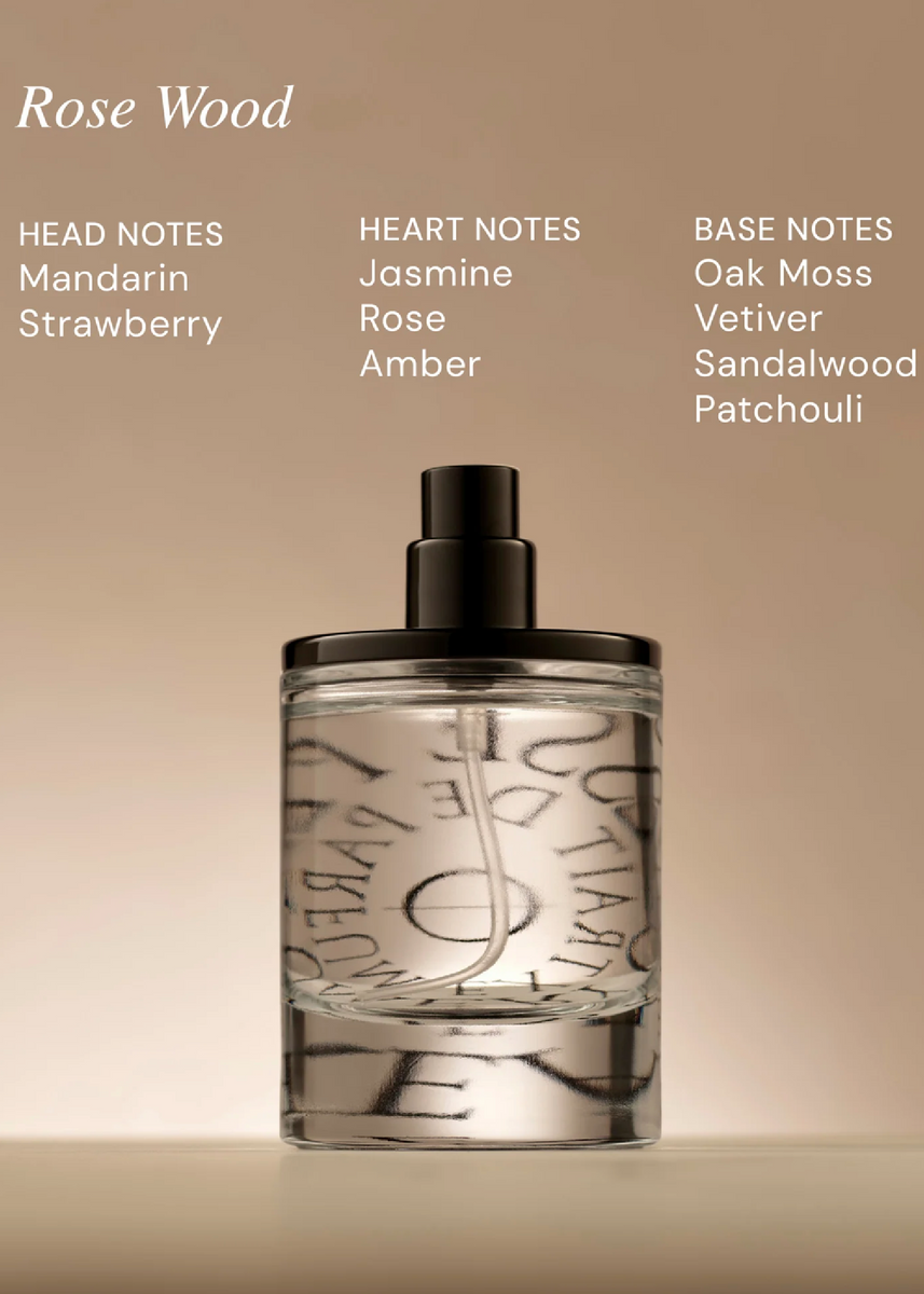 Opening with juicy mandarin and strawberry, Rose Wood quickly reveals her lush notes of jasmine and rose. Fresh and youthful, she contradicts her femininity with hints of oak moss, vetiver, sandalwood and patchouli- because all good girls have a dark side.