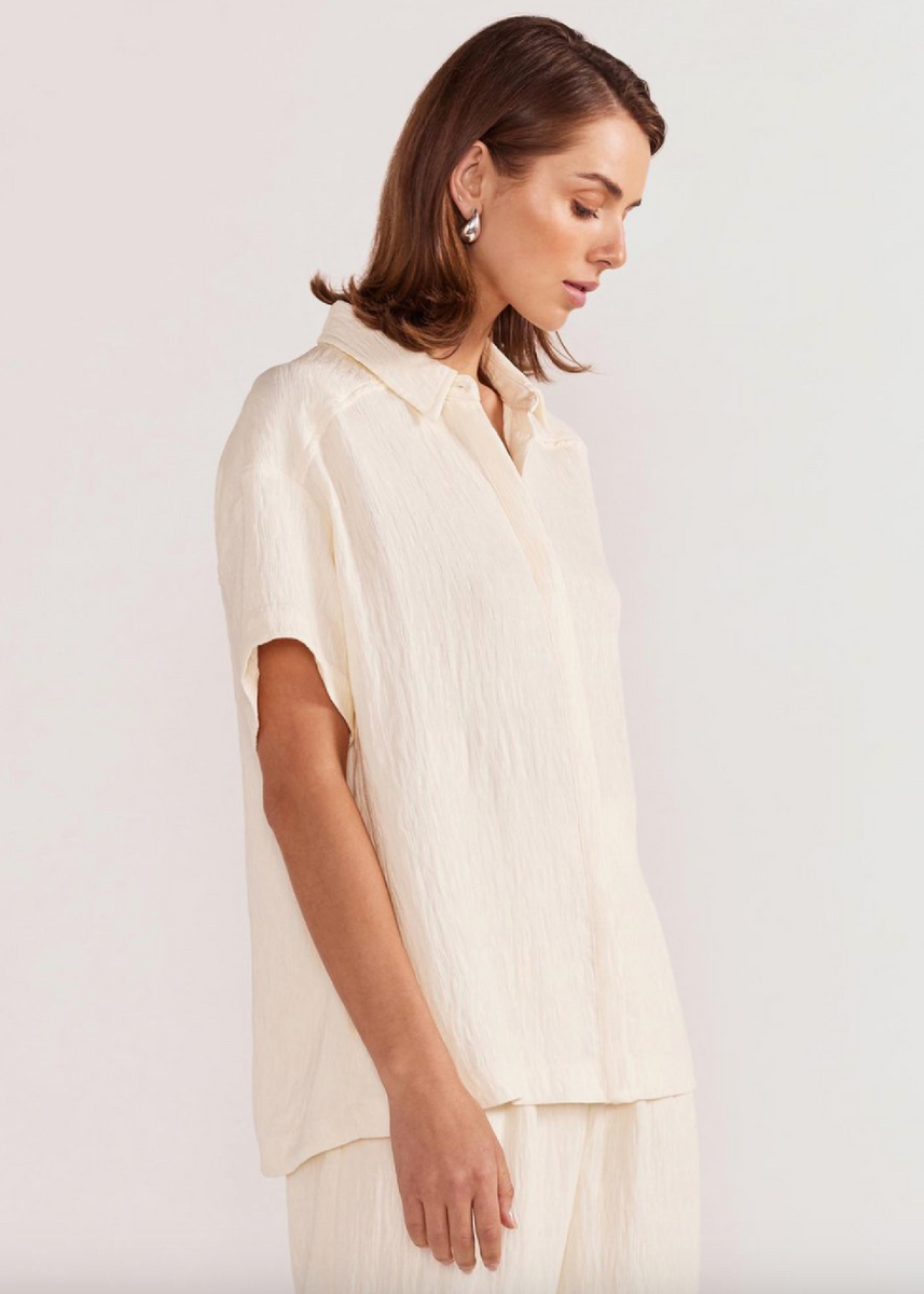 Elevate any outfit with the SABINE RESORT SHIRT. Perfect for work or play, this versatile shirt pairs perfectly with the Sabine Wide Leg Pant for a chic and polished look. With its luxurious fabric and flattering fit, you'll feel confident and stylish in any setting.