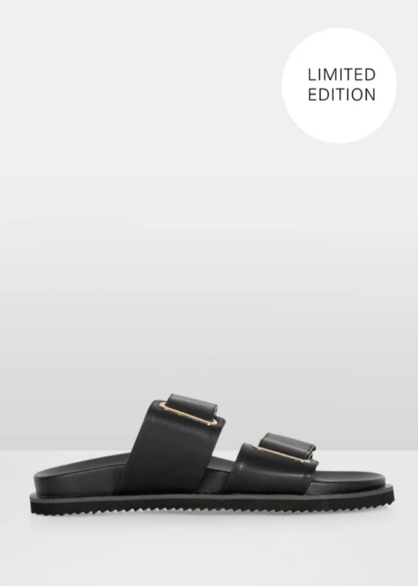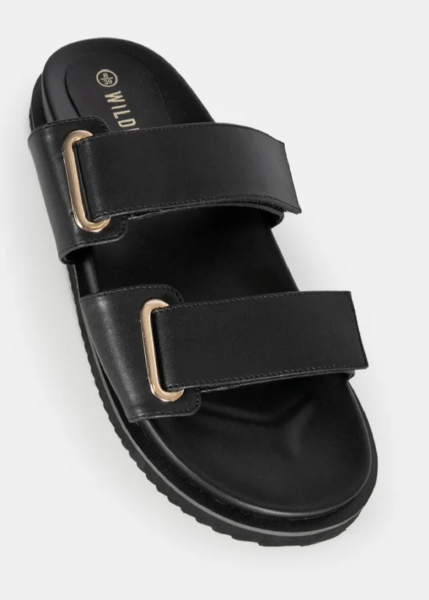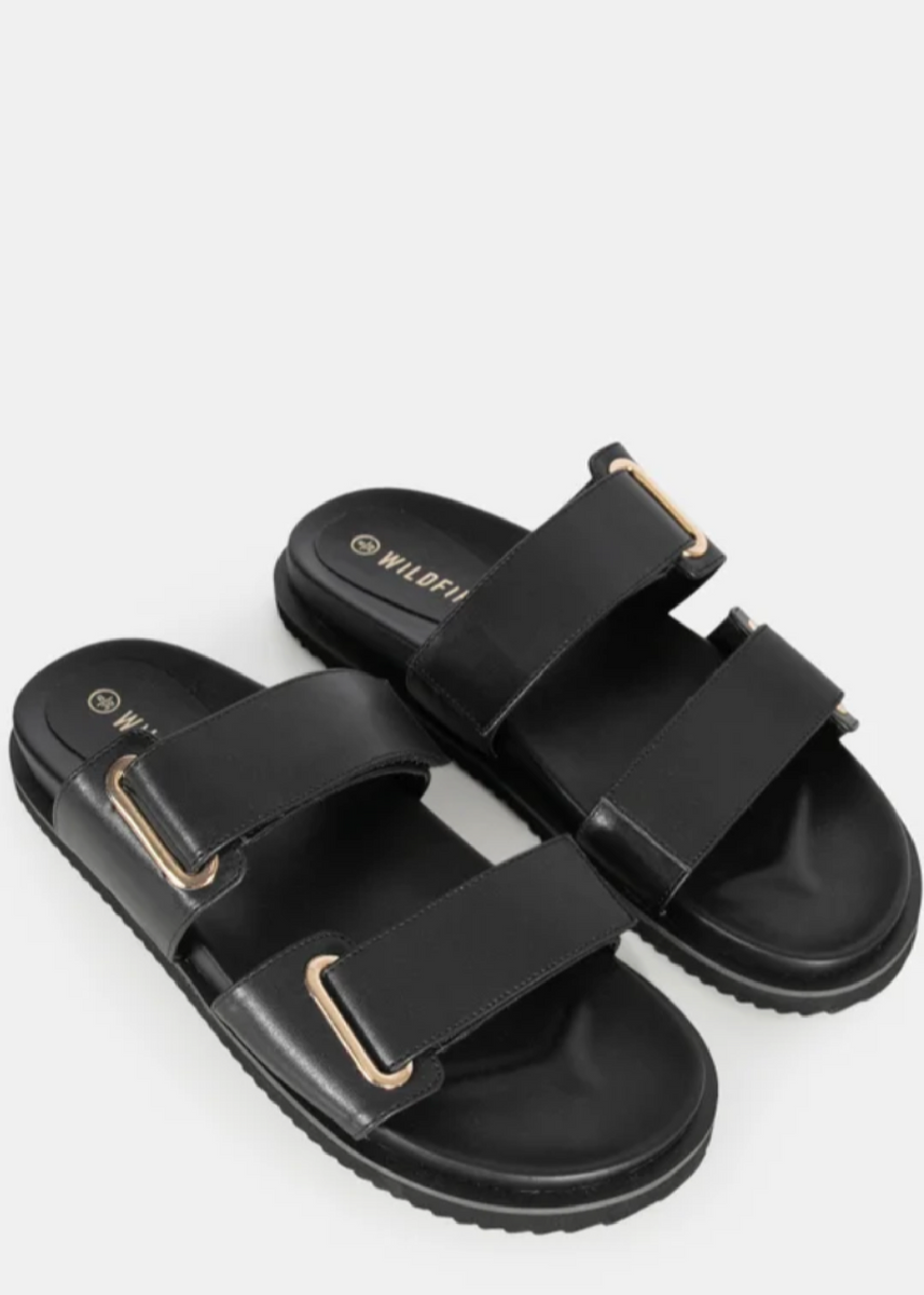 Tansy is a sizzling hot style you need in your wardrobe this season! This comfy slide has a supportive sole and two thick top straps, both with a touch-fastening element which can be adjusted to fit your foot perfectly. Featuring gold hardware details, Tansy is a timeless design with a trendy twist! Wear easily with any summer outfit for a relaxed, yet refined look. Treat yourself to a pair of tansy!
