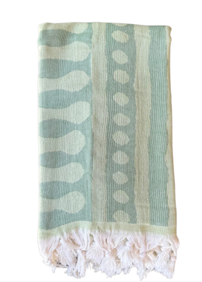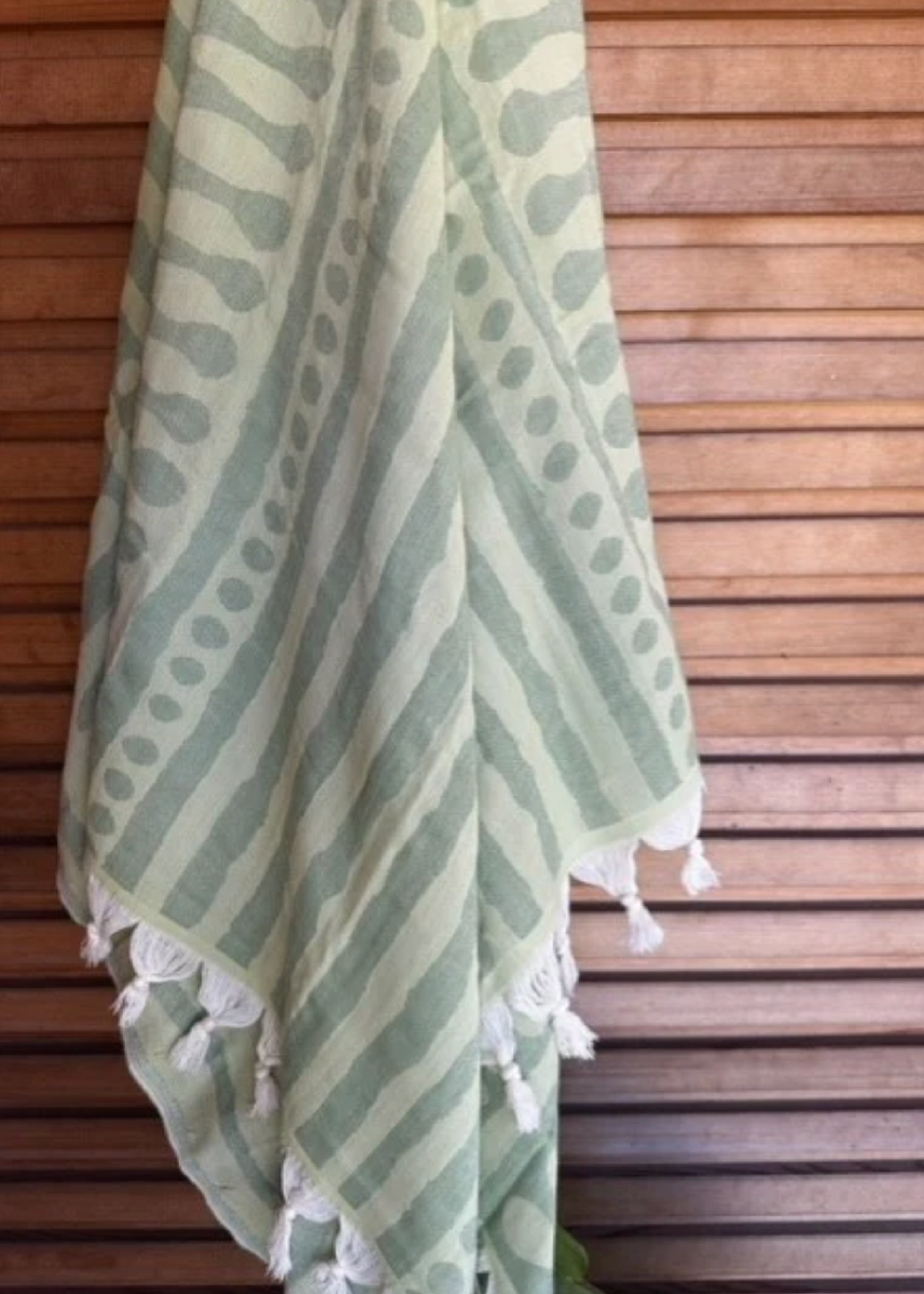 TRIBAL STRIPE TURKISH TOWEL - PISTACHO & OLIVE